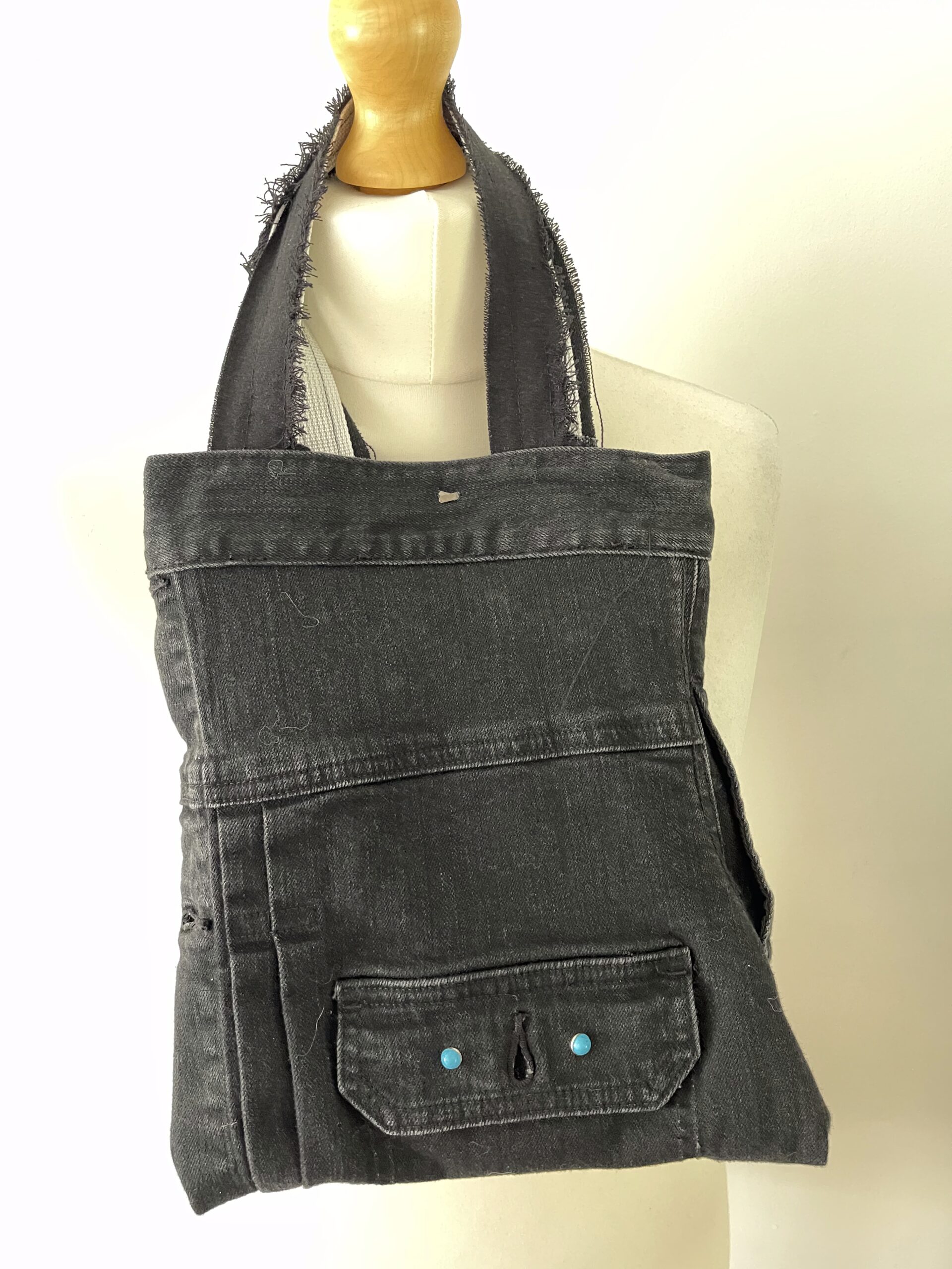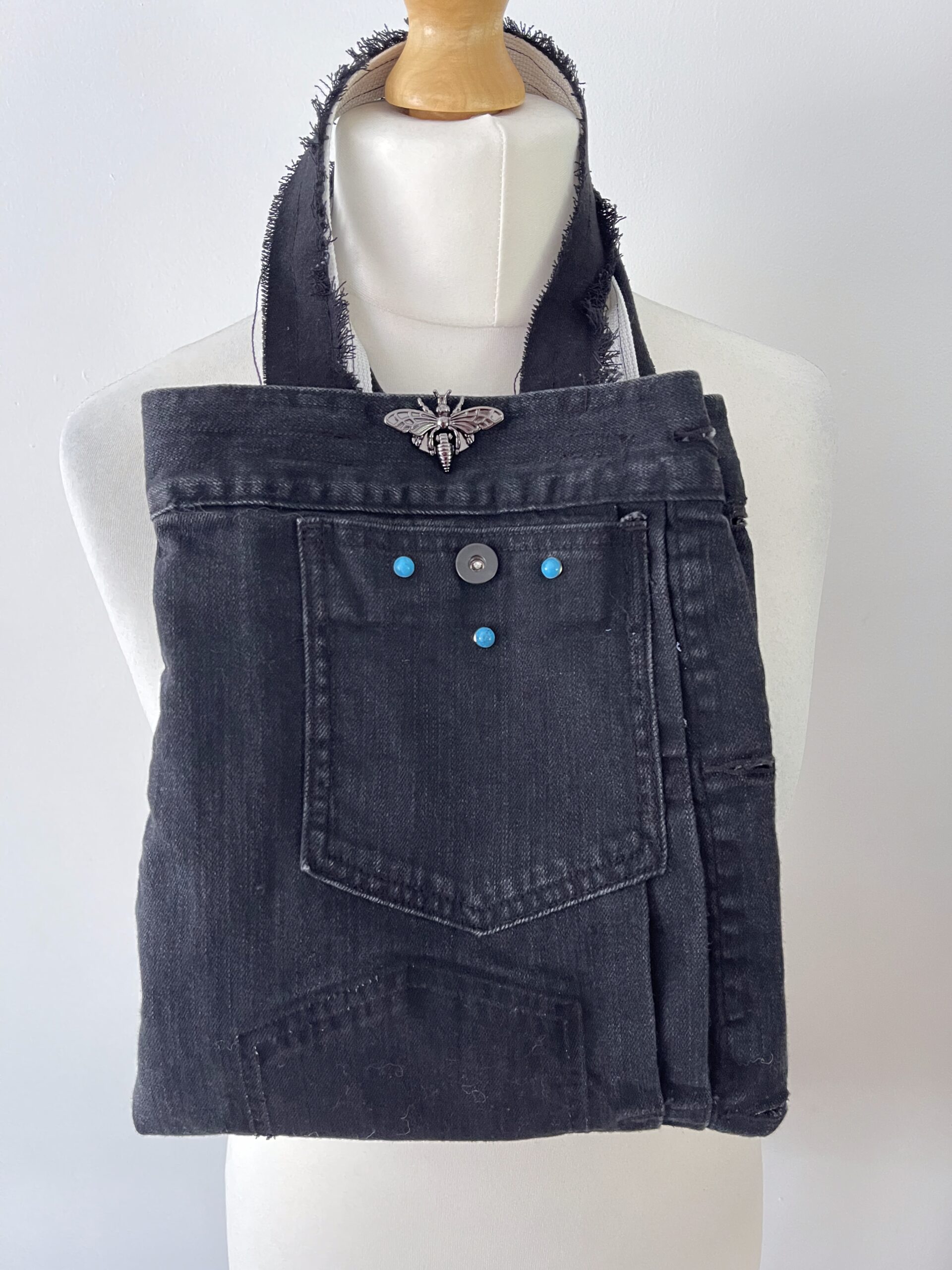 Transform your style with this unique upcycled denim jacket bag.