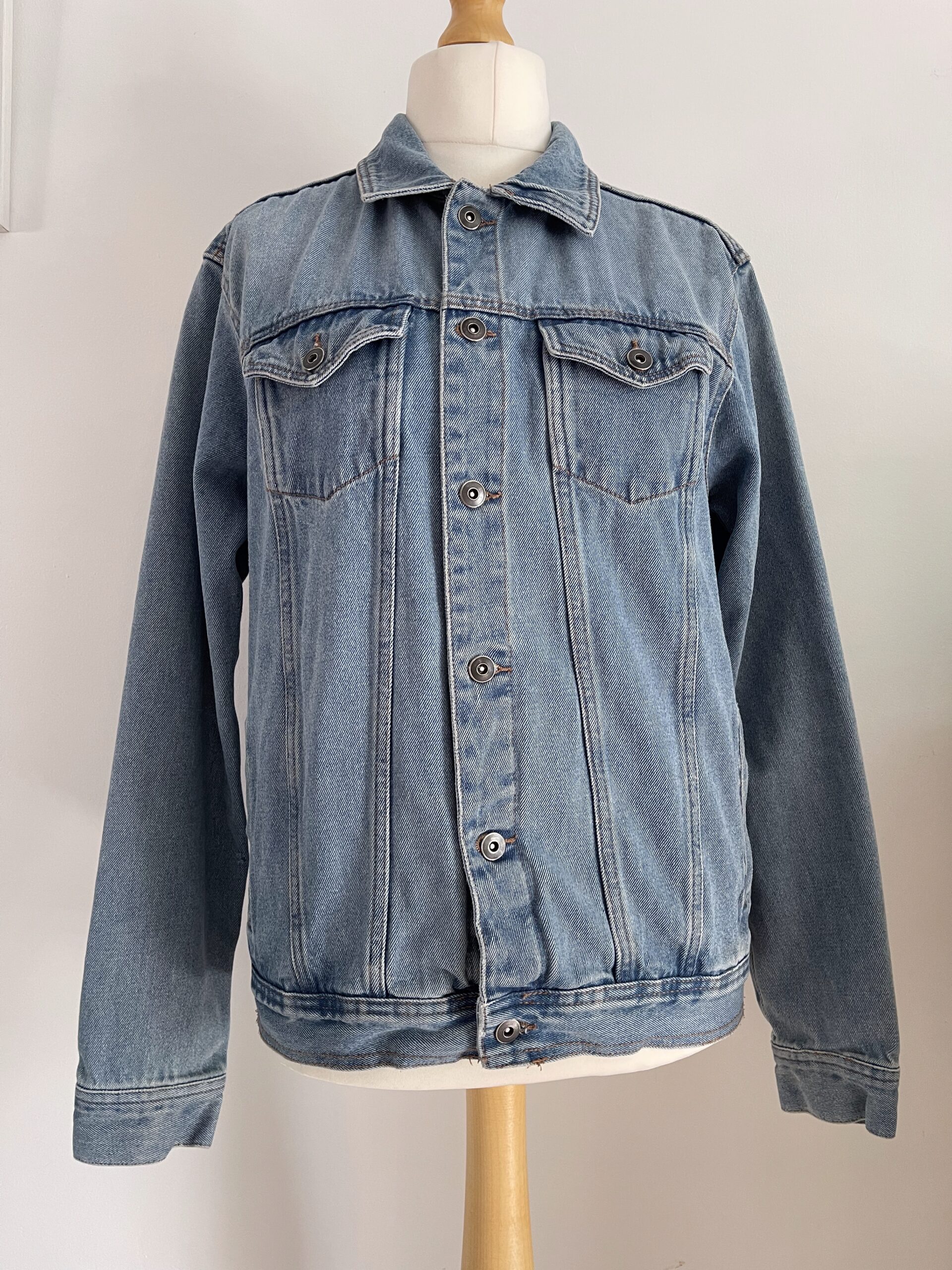 Crafted from 100% cotton and reworked for a sustainable, eco‑friendly finish, this Size M jacket features authentic vintage character and natural imperfections that enhance its charm.