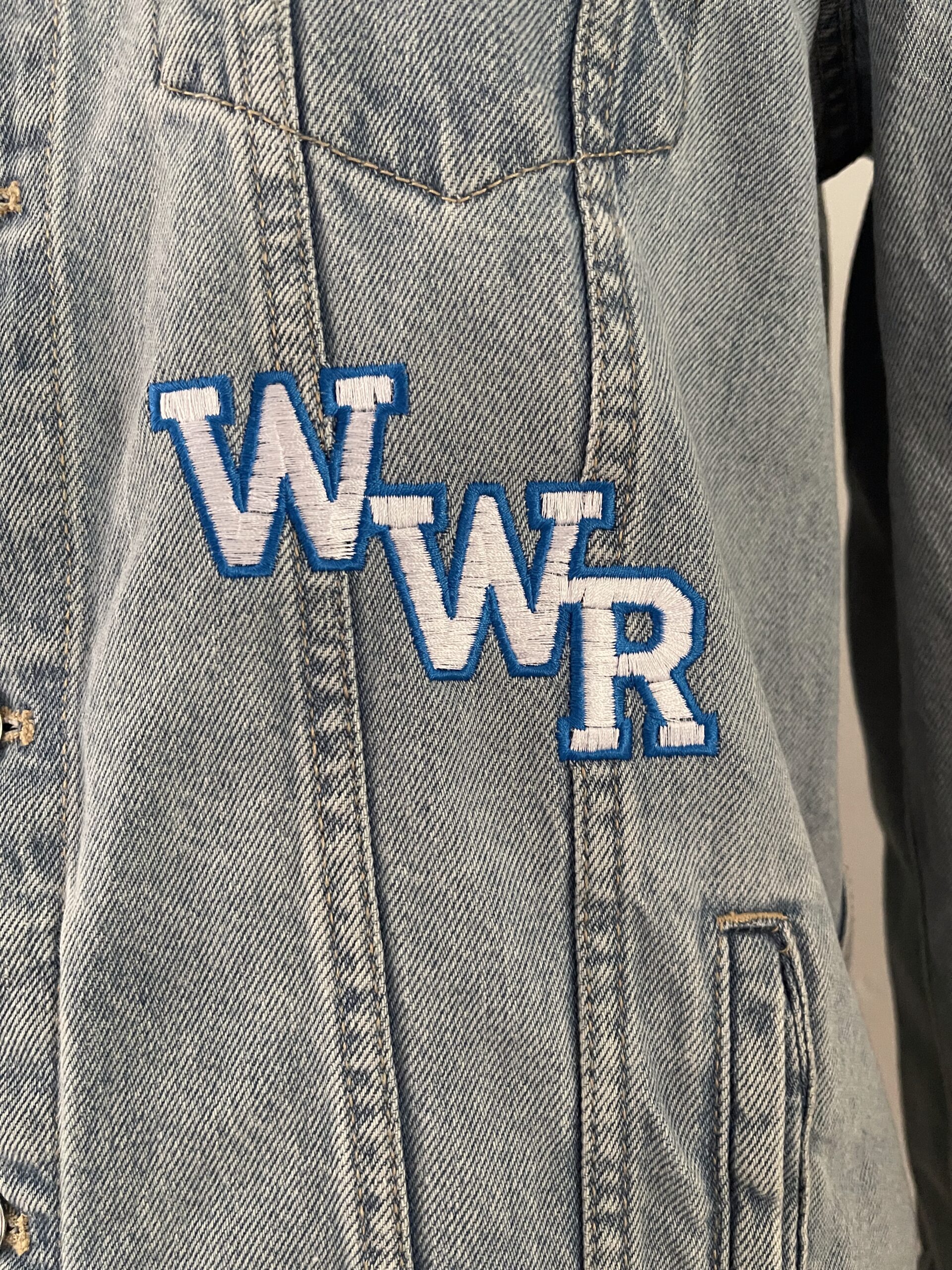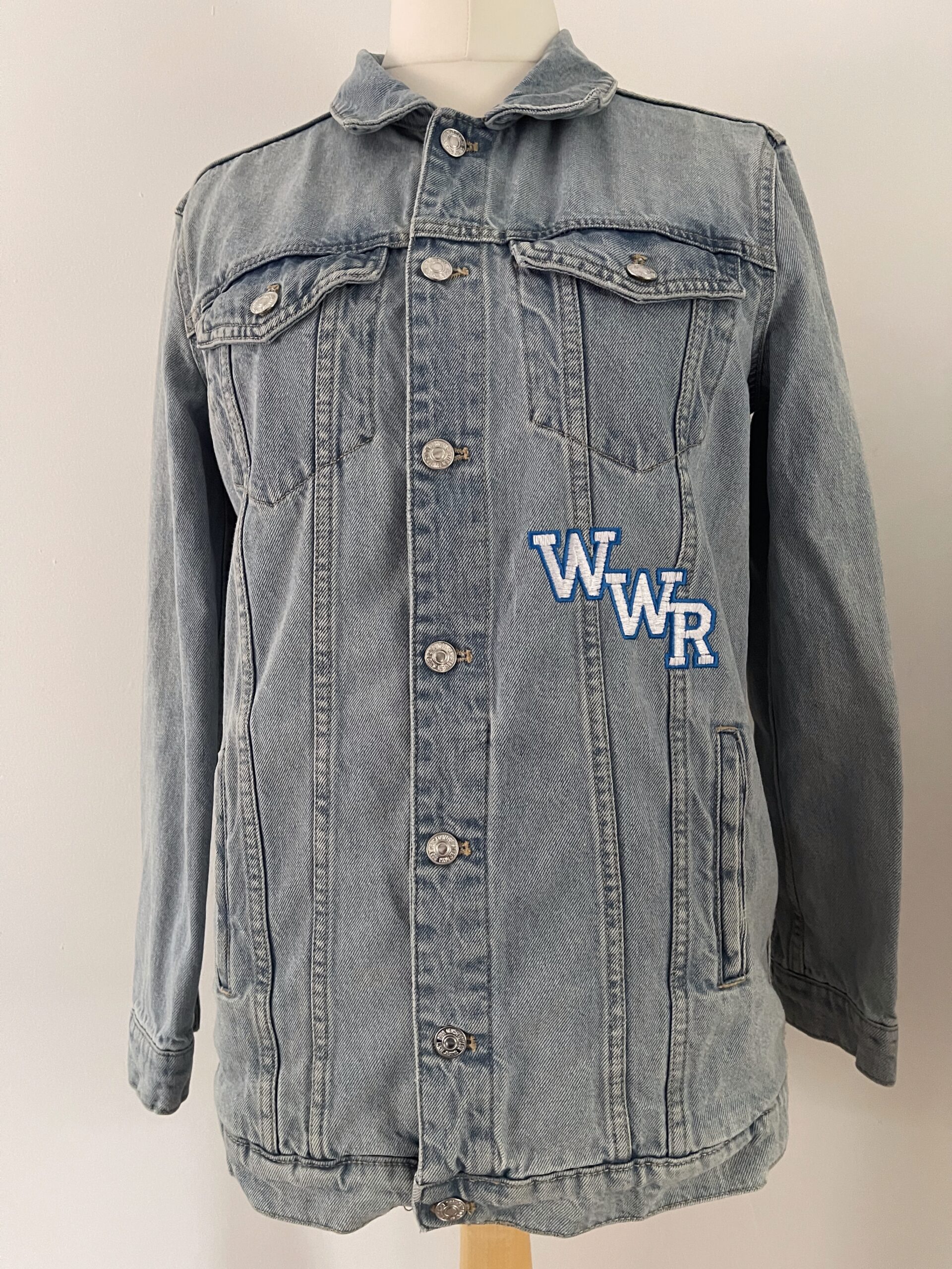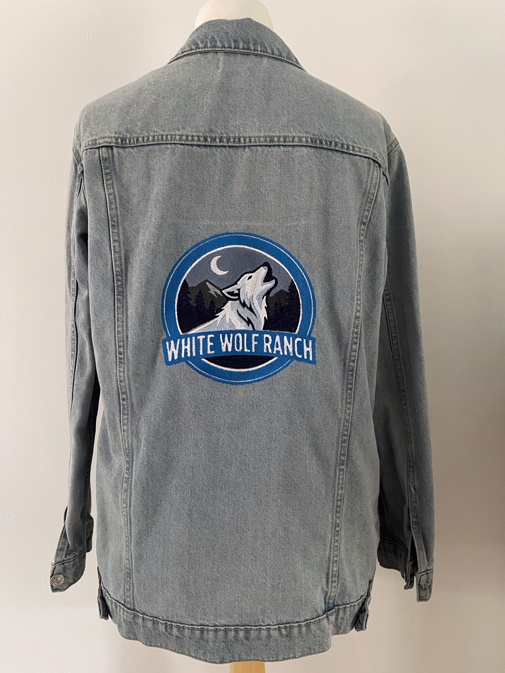Vintage upcycled denim jacket custom embroidered for a unique unisex style.